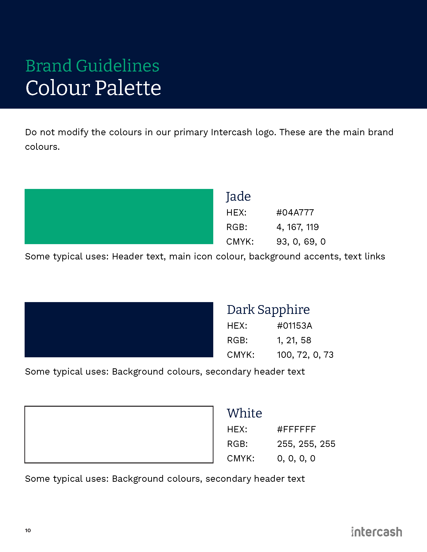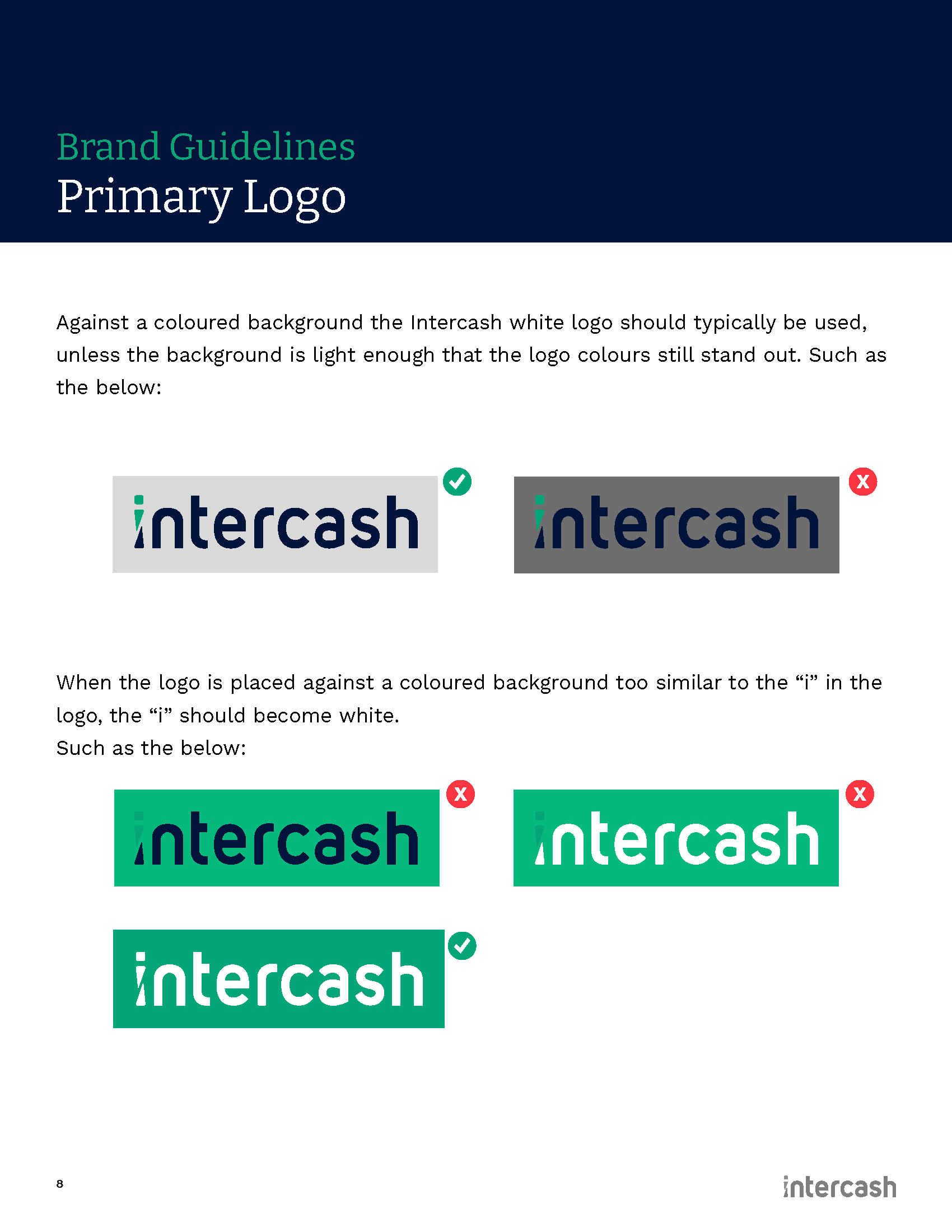 I developed Intercash's brand guidelines from scratch — the first formal identity system in the company's history. The guidelines covered color palette, typography, voice and tone, and logo usage, giving the brand a consistent foundation across all markets and touchpoints.