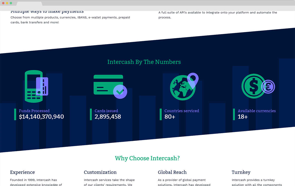 The rebrand gave Intercash a visual and strategic identity commensurate with their position in the global payments market — one they could scale consistently across regions and channels. The integrated website and CRM infrastructure replaced a previously manual process, giving the sales team cleaner data and faster follow-up on inbound leads.