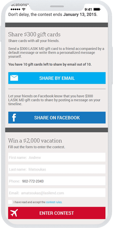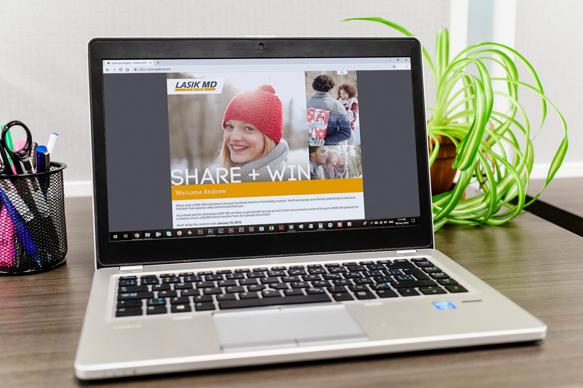 LASIK MD's existing referral system was built on a CMS too rigid to support the experience the campaign needed — no responsive design capability, no flexibility for custom interactions. The brief required replacing it entirely with a purpose-built landing page while designing a referral mechanic compelling enough to motivate existing patients to actively recruit friends and family.