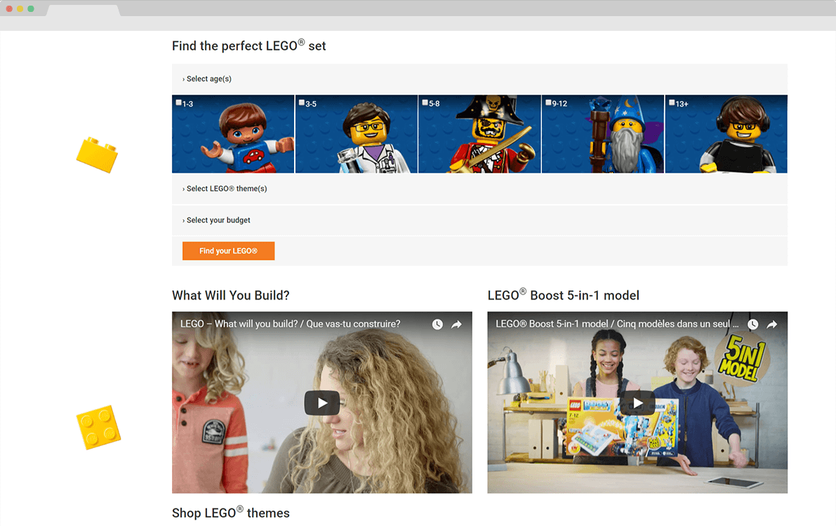 — making LEGO's broad catalog immediately navigable for any shopper type